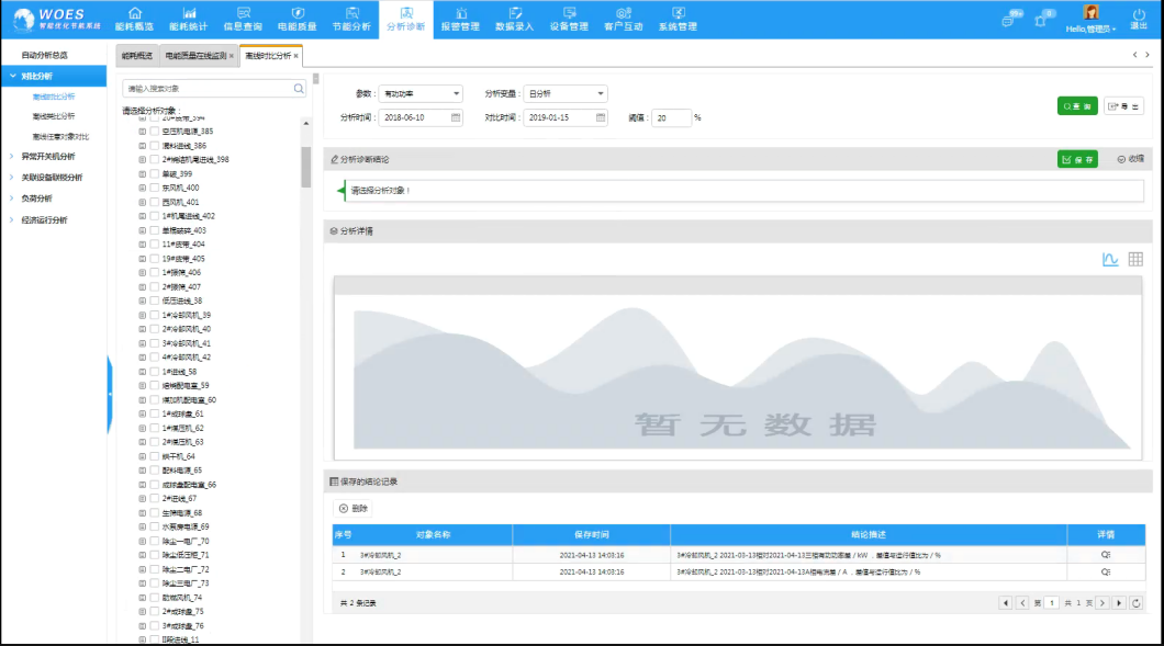 WOES智能優(yōu)化節(jié)能系統(tǒng)運(yùn)行以來每年節(jié)約電費(fèi)287萬元。具體節(jié)能效益如下: