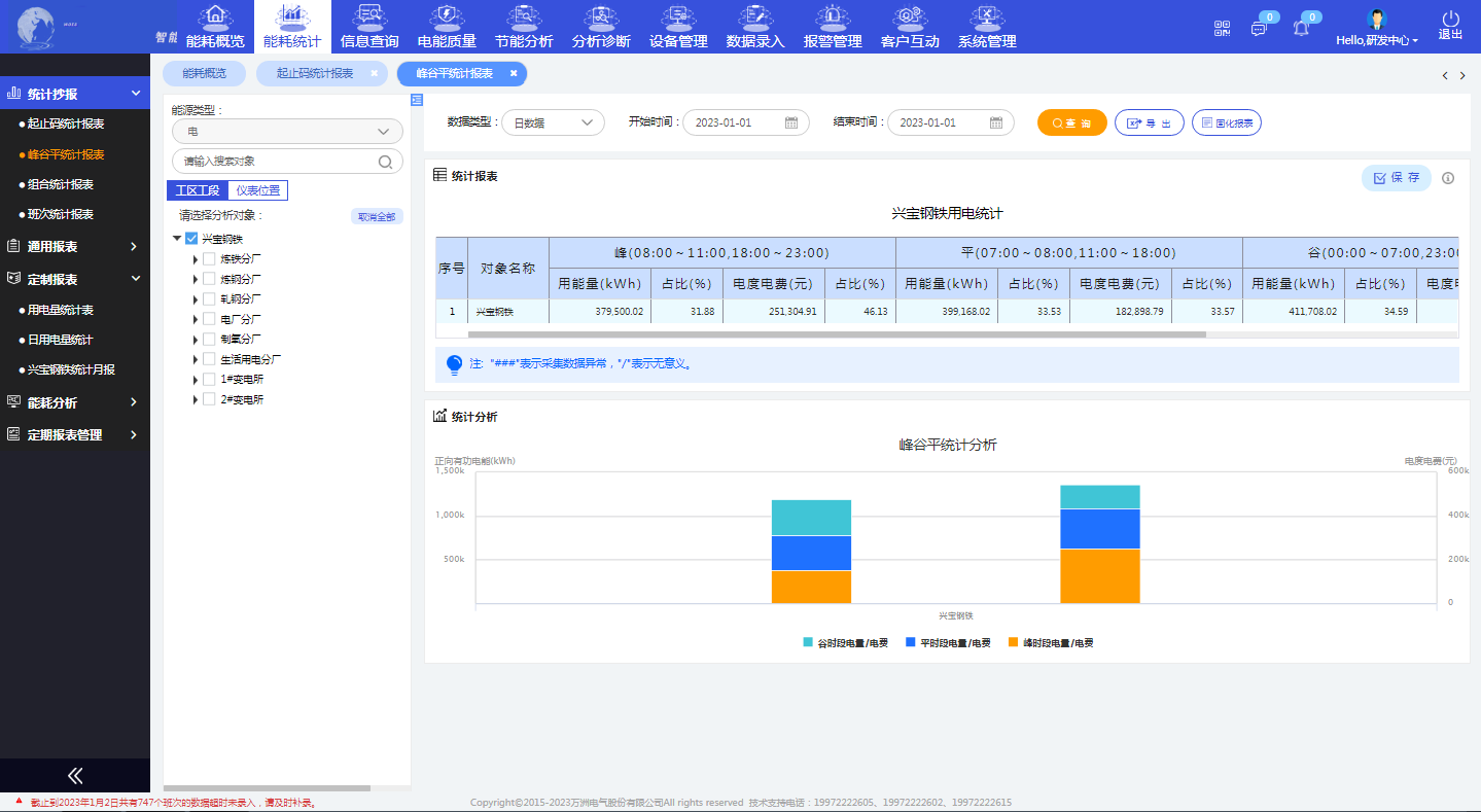 2、提升產(chǎn)品單耗分析能力。通過各種趨勢(shì)圖、曲線圖等統(tǒng)計(jì)、分析功能對(duì)鐵水、鋼坯、鍛件、鋼管進(jìn)行單耗分析(將當(dāng)前能源消耗的指標(biāo)數(shù)據(jù)與企業(yè)管控值、行業(yè)先進(jìn)值進(jìn)行對(duì)標(biāo)),根據(jù)不同時(shí)間(白班和夜班、夏季和冬季)的單耗可以分析出區(qū)域能耗異常的時(shí)間,從而查找原因制定措施針對(duì)性解決。