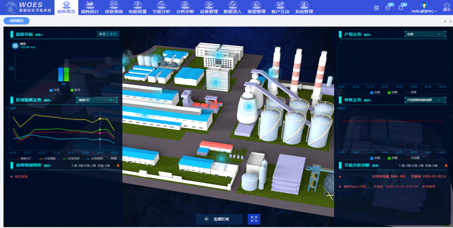 山西省某鋼鐵有限責(zé)任公司W(wǎng)OES智能優(yōu)化節(jié)能系統(tǒng)監(jiān)測(cè)能源種類為電力、水、蒸氣、煤氣,監(jiān)測(cè)點(diǎn)共計(jì)411個(gè),其中電力監(jiān)測(cè)點(diǎn)338個(gè)、水系統(tǒng)監(jiān)測(cè)點(diǎn)44個(gè)、蒸汽和煤氣、氮?dú)狻⒀鯕獗O(jiān)測(cè)點(diǎn)52個(gè)。涵蓋煉鐵廠(石灰窯工段、噴煤工段、球團(tuán)工段、燒結(jié)工段、高爐煉鐵工段)、煉鋼廠、軋鋼廠、制氧廠、發(fā)電廠、煤氣柜。項(xiàng)目主要建設(shè)內(nèi)容如下: