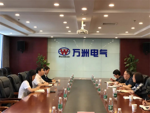 黃主席首先參觀了一樓文化展示廳,了解了萬洲電氣的發展歷程、科技創新、重要榮譽和黨群工作等情況。隨后,黃主席一行與趙總在19樓董事會會議室進行了座談交流。趙總說:“萬洲電氣非常重視和支持工會工作,將結合企業自身實際情況,積極配合上級工會創建四級勞模創新工作室,推動企業勞模帶頭革新,并創新開展QC小組活動,充分發揮企業勞模示范作用。”座談中,雙方還就當前疫情對企業生產經營發展的影響、企業困難職工關愛、企業創新獎勵機制完善等內容進行了交流探討。