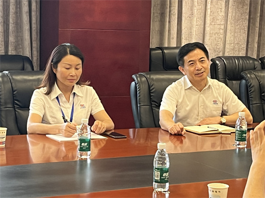 在萬洲電氣工會主席、行政部經(jīng)理熊海娟的陪同下,田局長一行首先參觀了1樓文化展示廳,熊主席介紹了公司重要榮譽、科技創(chuàng)新、企業(yè)發(fā)展等情況。隨后,田局長一行來到19樓董事會會議室,與趙總展開交流座談。