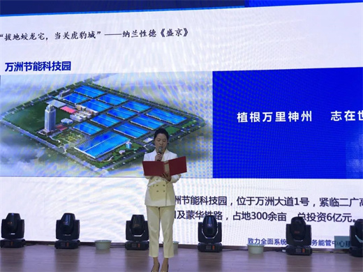 隨后,在大家熱烈的掌聲中,萬洲電氣行政部宣傳干事張紅云第一個走上舞臺,向大家展示獨具特色的萬洲企業文化。11首精妙絕倫的詩句,展示了萬洲電氣從無到有、從小到大的不凡歷程。“千磨萬擊還堅勁,任爾東西南北風”,張紅云聲情并茂的誦讀,或充滿艱辛,或慷慨激昂,或充滿力量,或信心昂揚,讓大家感受到萬洲電氣不畏艱難,不言放棄,篤定前行,創造奇跡的勇氣和力量!作為一名萬洲人,要愛讀書,多讀書,讀好書,共同建設更有文化底蘊的萬洲電氣,張紅云用激情和自信演繹了萬洲企業文化的無限魅力,贏得了現場觀眾的熱烈掌聲。