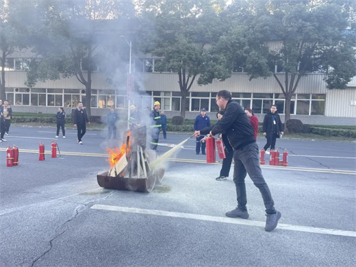 下午15:00,樊城區消防救援大隊宣講員翟一帆老師首先為大家講解了《企業消防隱患及預防》的相關課程,介紹了企業消防有哪些隱患、面對這些隱患如何預防等知識。隨后,全體參訓人員來到消防演練地點——宿舍樓開展了火災救援模擬演練。在公司主干道,翟老師還現場教授干粉滅火器和消防水帶的使用方法、分解動作及注意事項等,并讓安全員一一進行現場實操滅火。