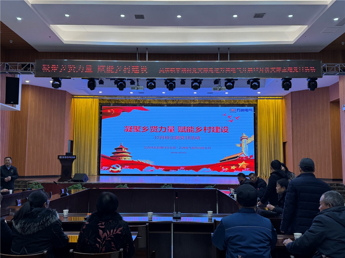 冬日寒風凜冽,會場氣氛熱烈。12月24日上午,棗陽市吳店鎮東趙湖村兩委干部、黨員代表、群眾代表、鄉賢代表30余人到萬洲電氣開展主題黨日活動。