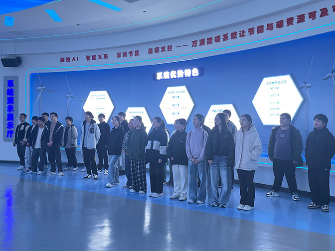 實習第一天,同學們首先參觀了公司廠區(qū),在一樓文化展示廳,創(chuàng)立之初的使命擔當、以人為本的企業(yè)文化、碩果累累的國牌榮譽、深耕節(jié)能的行業(yè)標桿,通過參觀讓同學們對萬洲有了全方位認知。在WOES節(jié)能系統(tǒng)演示廳,萬洲重大科技創(chuàng)新產品——智能優(yōu)化節(jié)能系統(tǒng)的研發(fā)歷程、優(yōu)勢特色、應用領域及未來發(fā)展吸引了同學們駐足觀看,并饒有興趣地現(xiàn)場體驗操作系統(tǒng)。