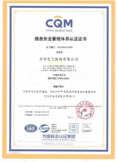近日,萬洲電氣成功取得《信息技術服務管理體系》和《信息安全管理體系》兩項認證證書。